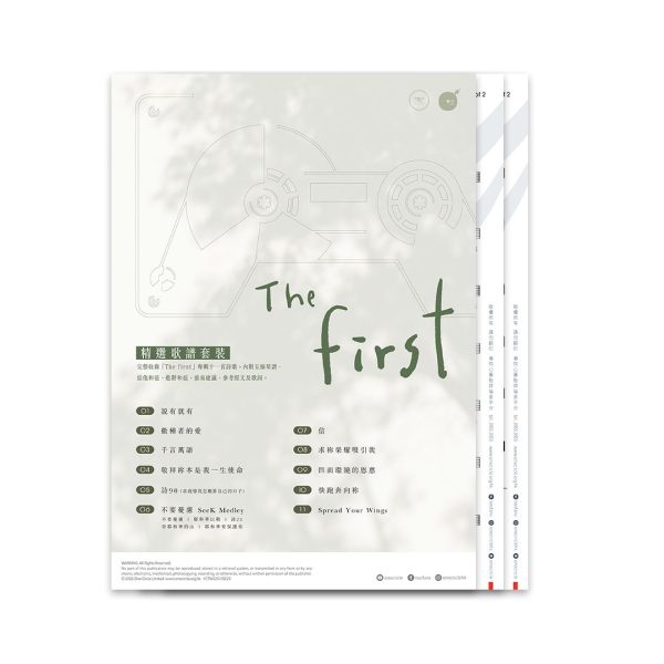 收錄《The First》專輯入11首精選新歌及人氣詩歌重新編曲,內附五線琴譜、結他和弦、進階和弦、前奏建議,參考經文及歌詞。